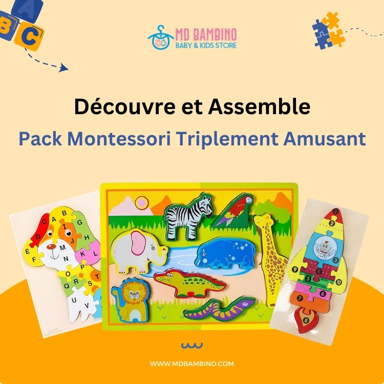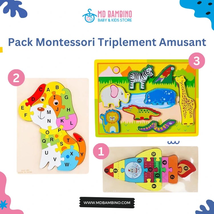 Plongez dans un univers d’apprentissage sensoriel et d’exploration créative avec notre ensemble de 3 jouets Montessori.